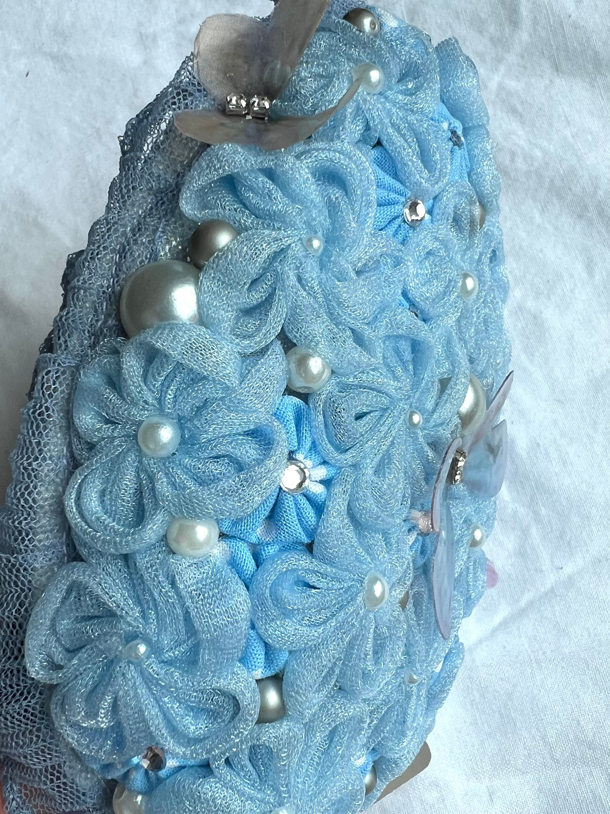 ベースにぎっしりヨーヨーキルトや花形のレースを詰め込んだヘドレ