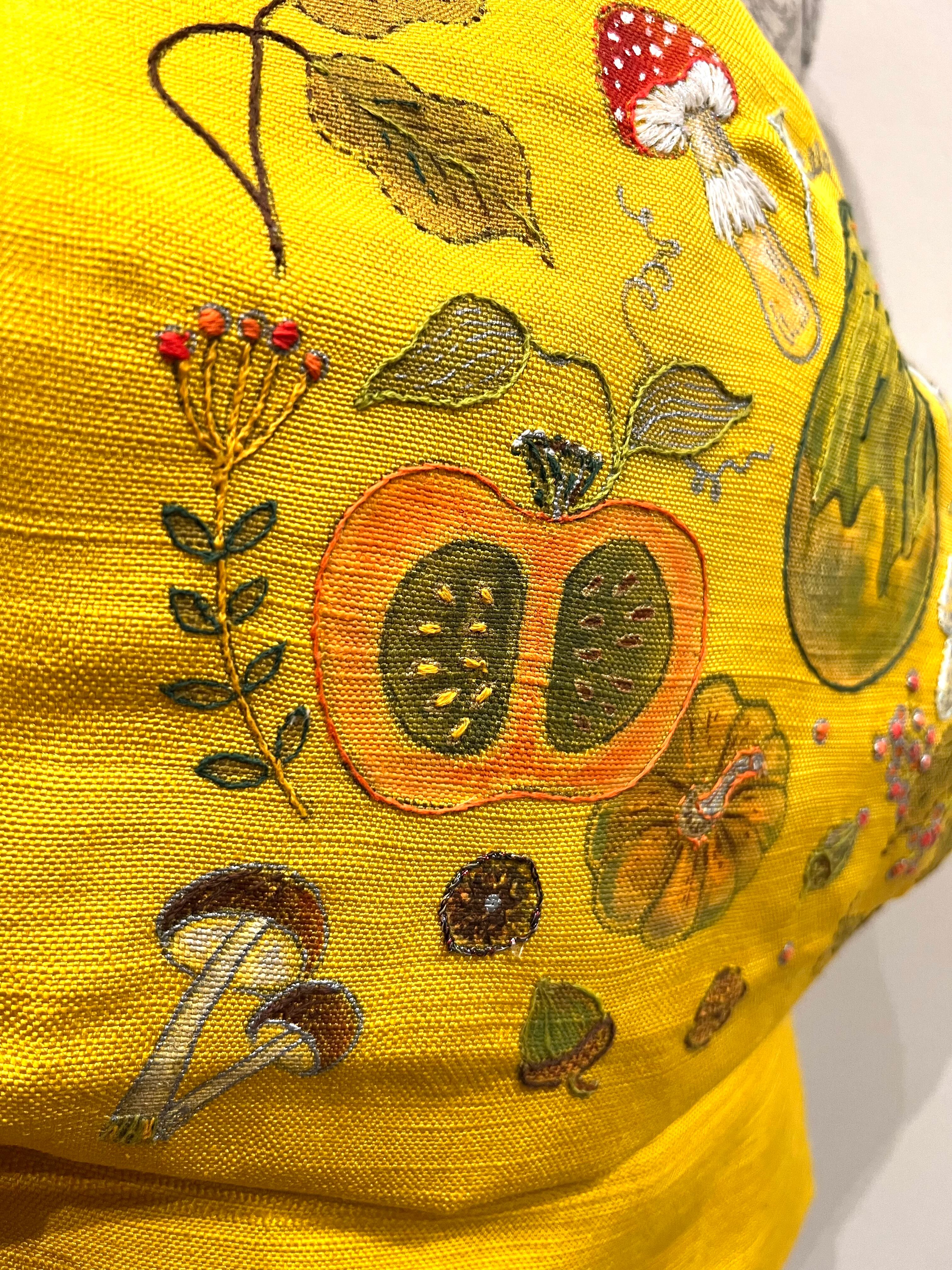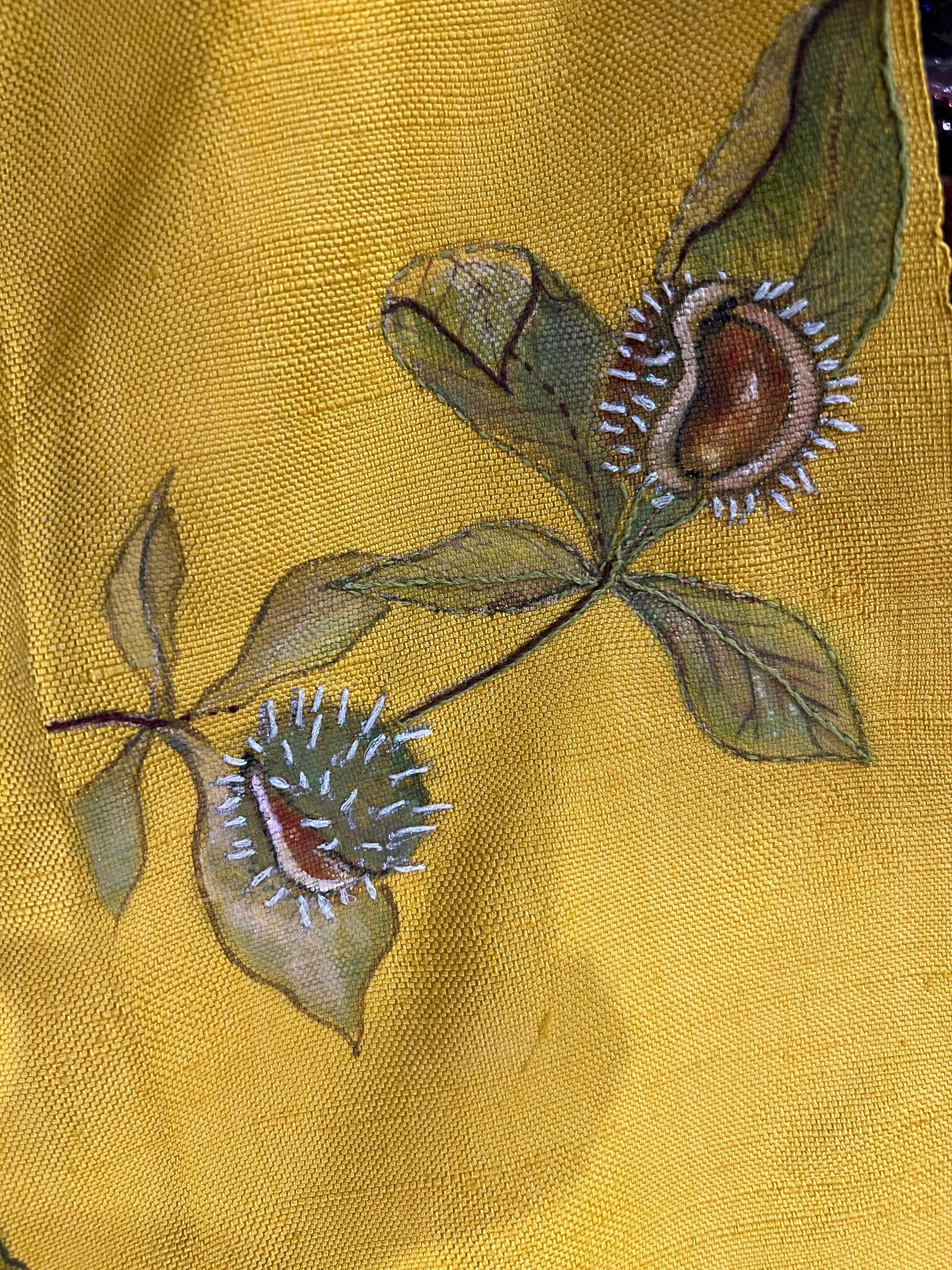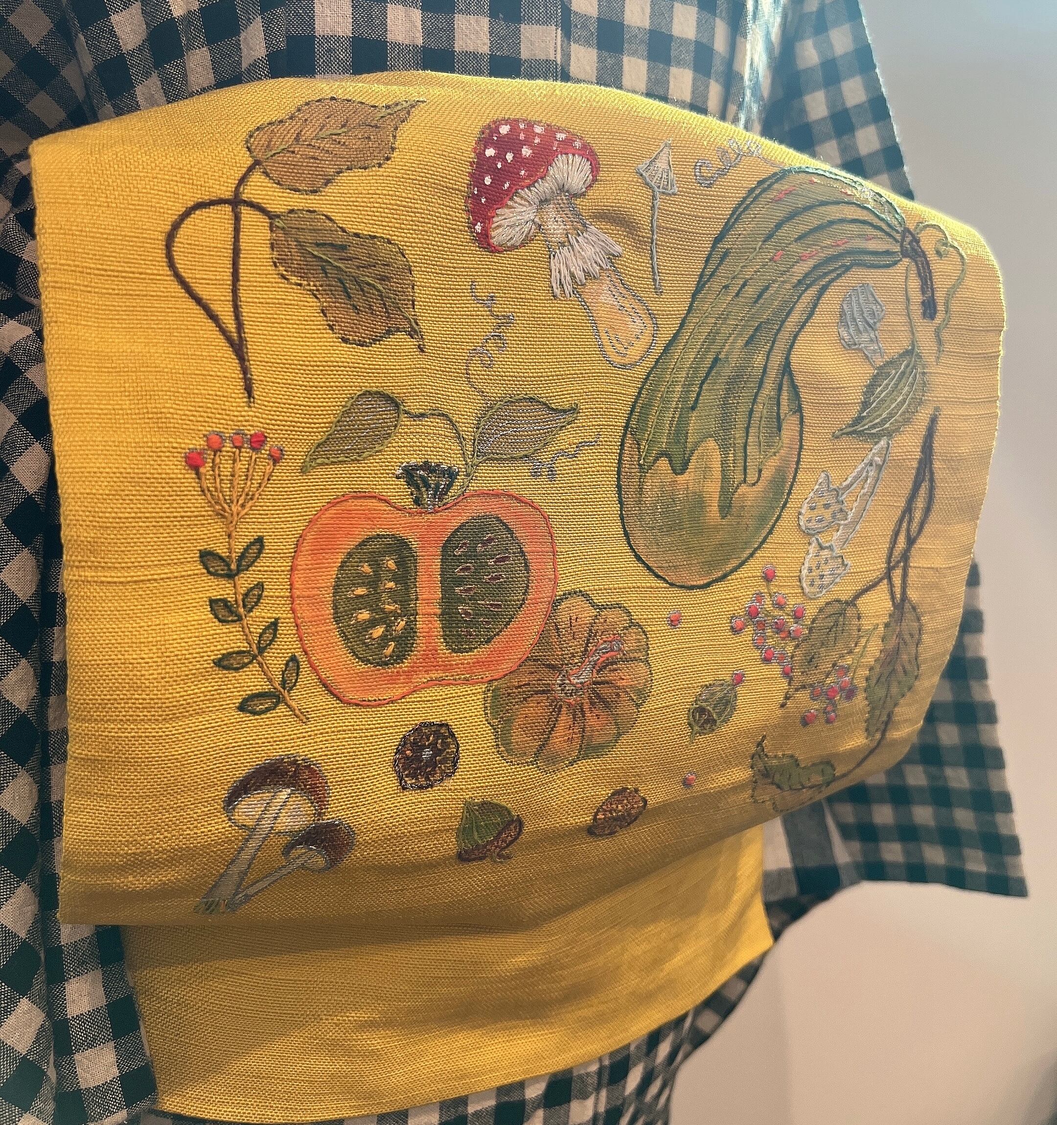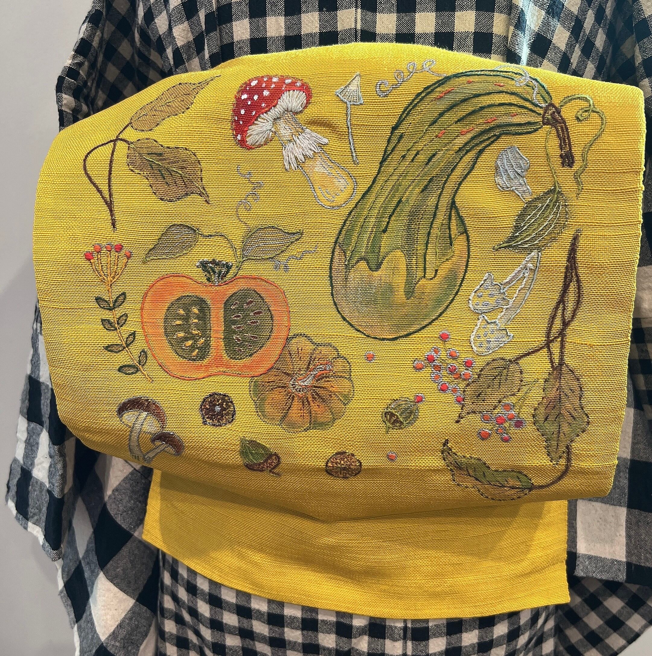 秋らしい絵付けと刺繍を施しました。
