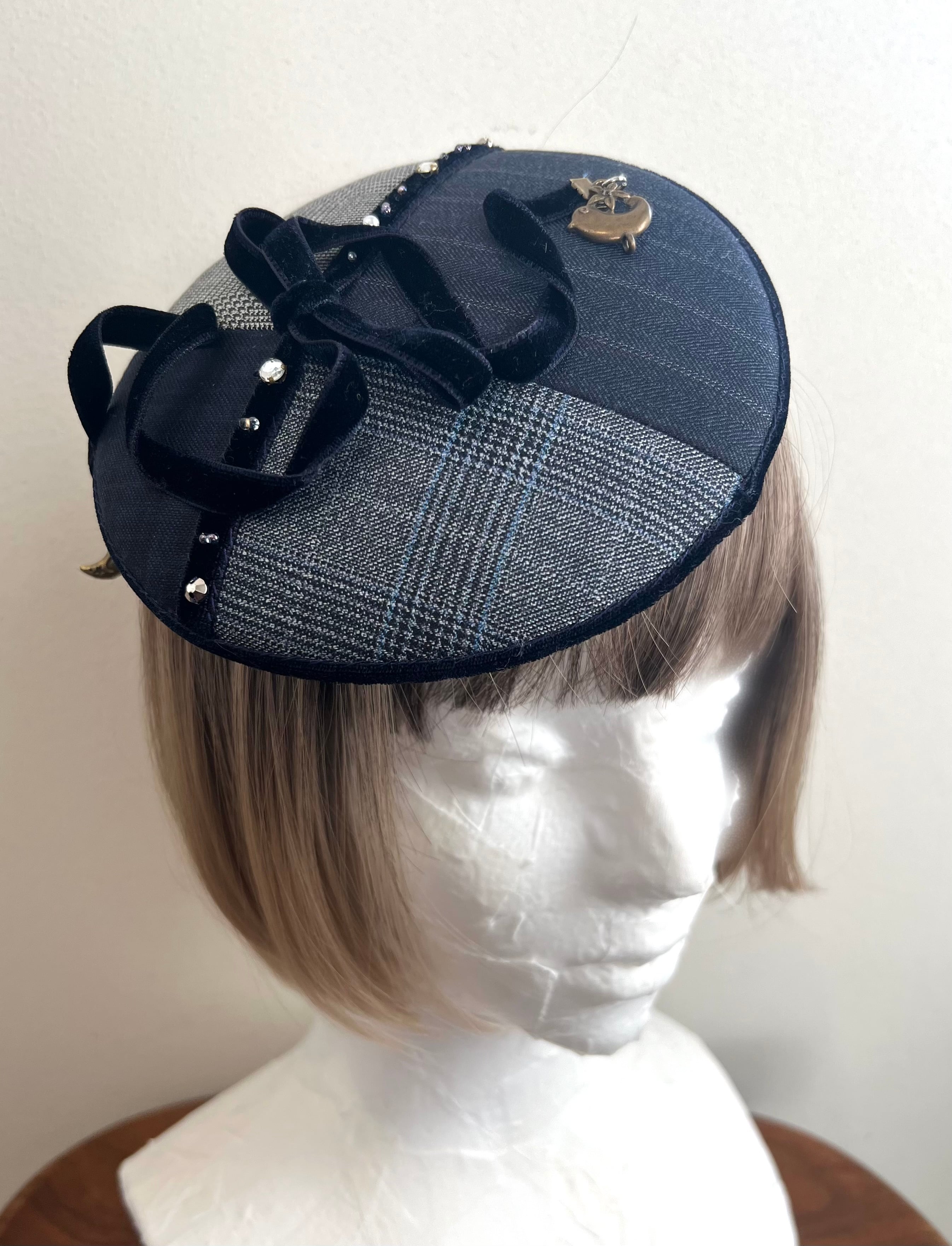スーツ ウール生地とベロアリボン ヘッドドレス
