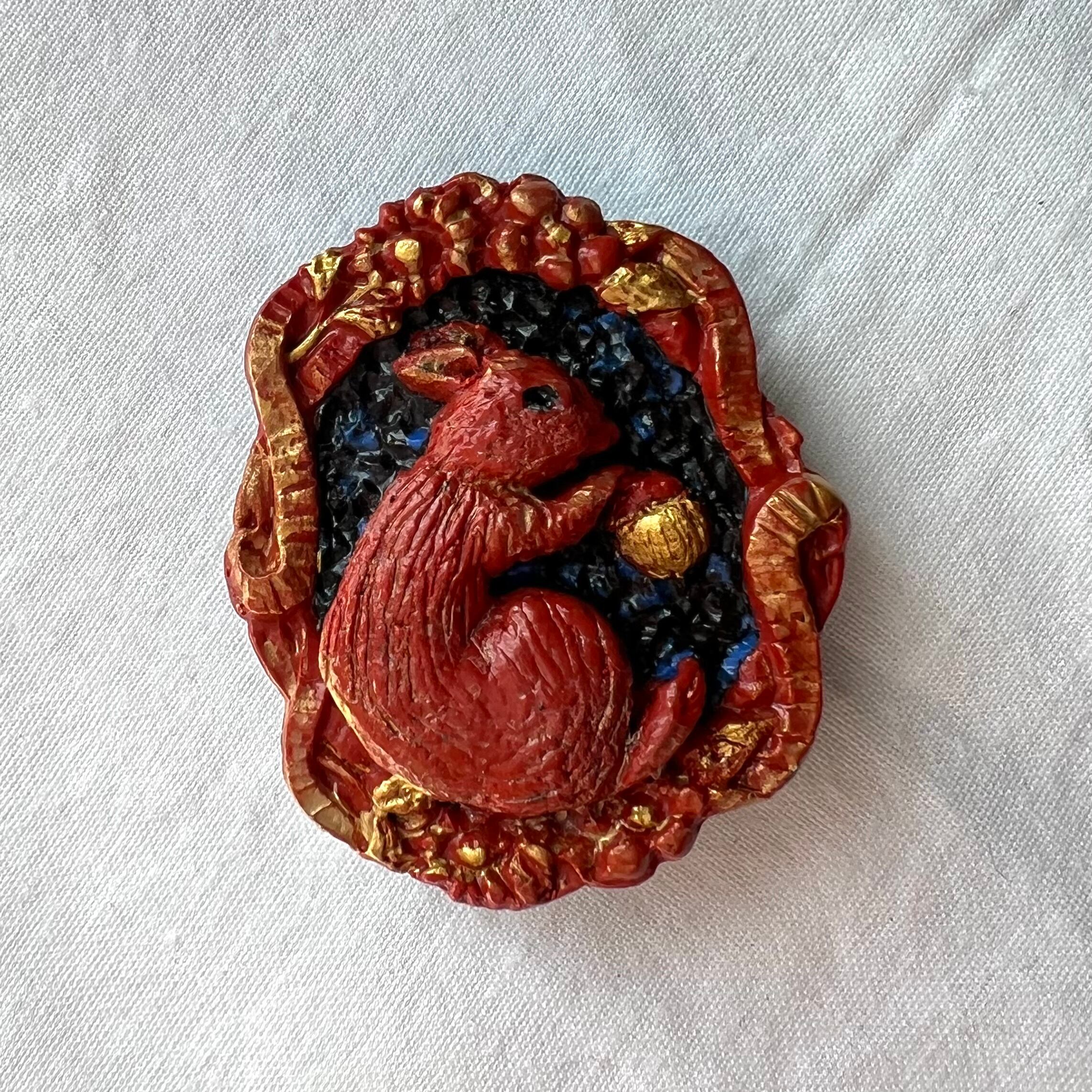 リスとどんぐり 帯留め